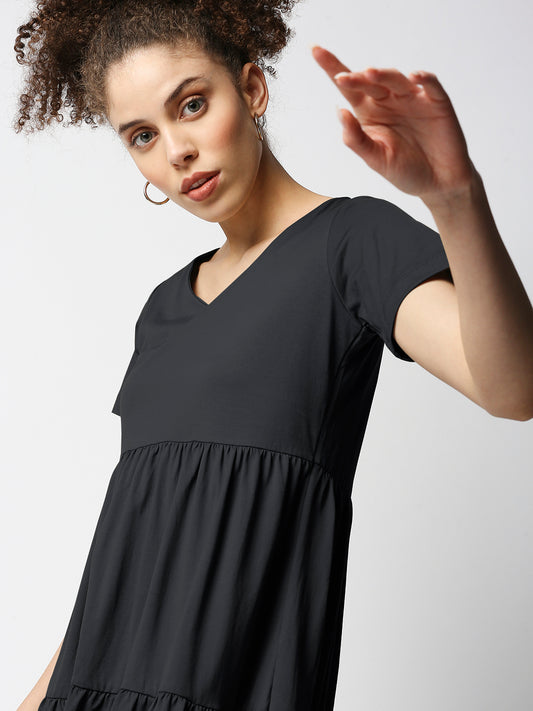 Disrupt Women's Black Tiered V-neck T-shirt Dress
