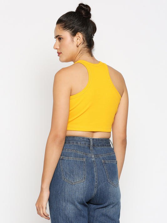 Disrupt Women Sleeveless Yellow Ribbed Crop Top