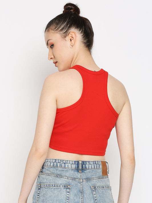 Disrupt Women Sleeveless Red Ribbed Crop Top