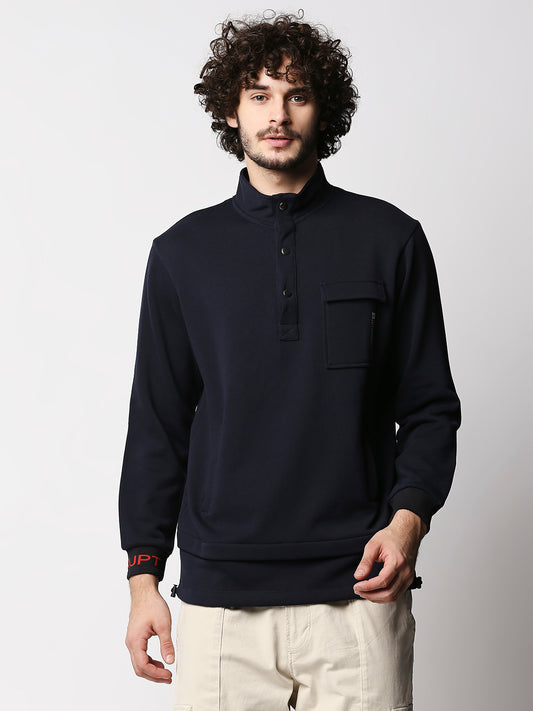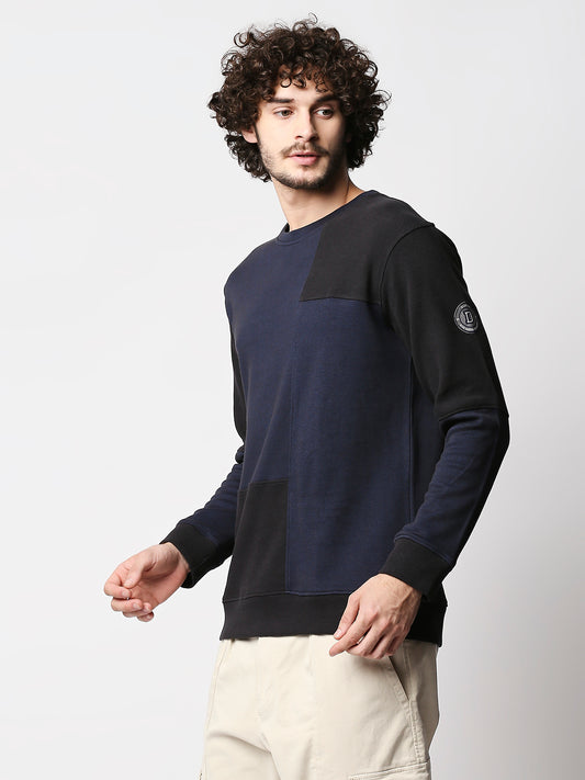 Disrupt Men Blue Cut-Sew Classy Comfort Fit Pullover