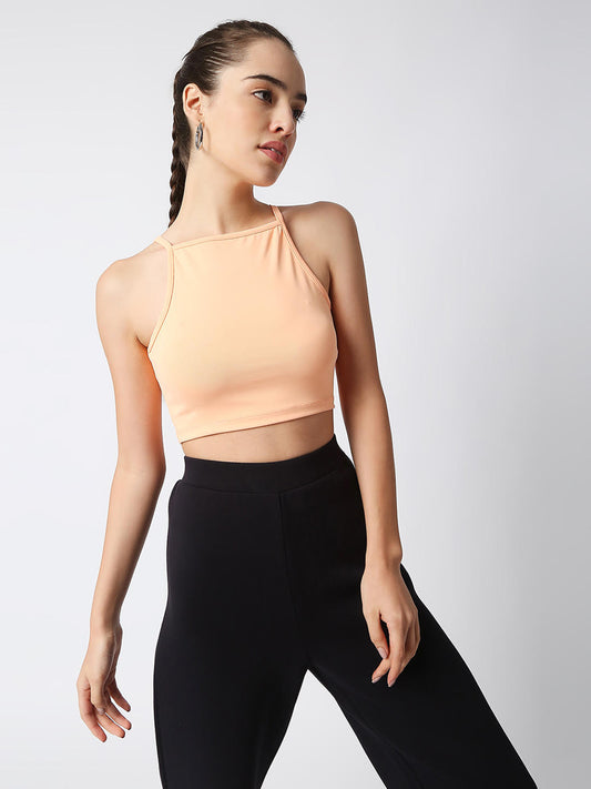 Disrupt Women Peach Spaghetti Square Neck Slim Crop Top