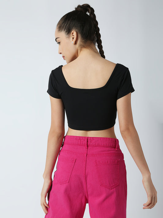 Disrupt Women Black Box Neck Slim Fit Smart Crop Top