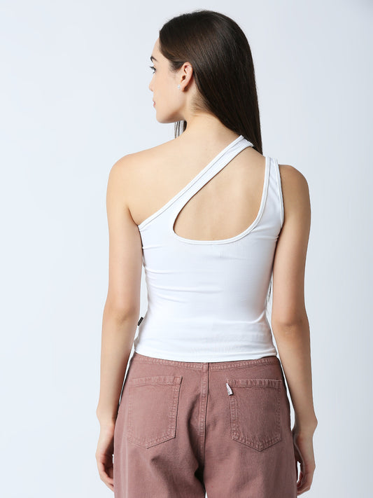 Disrupt Women White One-Shoulder Cut-Out Spaghetti Slim Crop Top