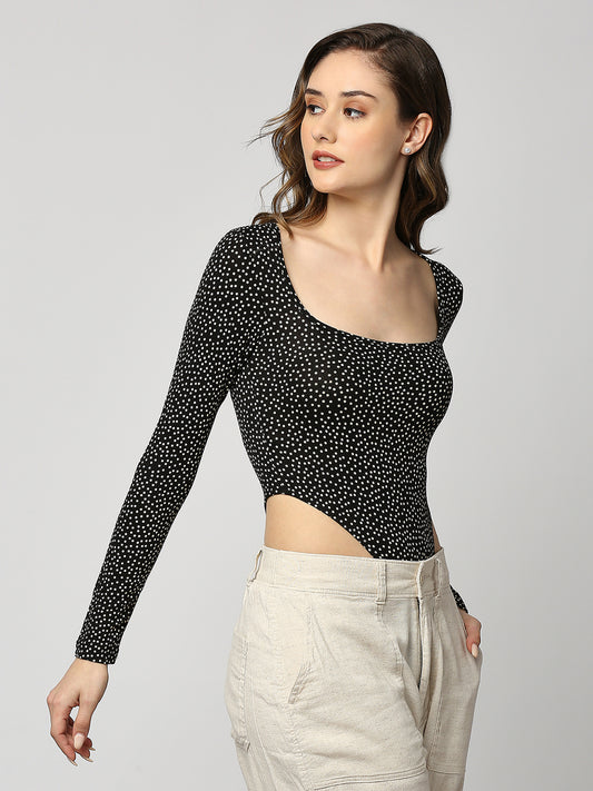 Disrupt Women Polka Dots Printed Bodysuit (Black)