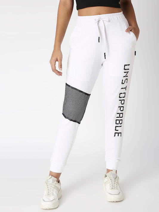 Disrupt White Mesh Panel Typographic Jogger For Women