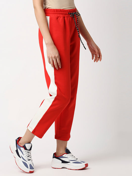 Disrupt Women Red Side Pannel Tapered Ankle Length Trackpants
