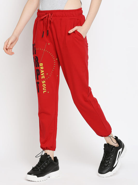 Disrupt Red Graphic Print Regular Fit Joggers For Women