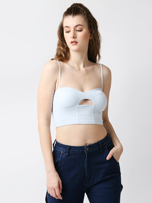 Disrupt Women Baby Blue Checkered Spaghetti Slim Fit Crop Top With Cups