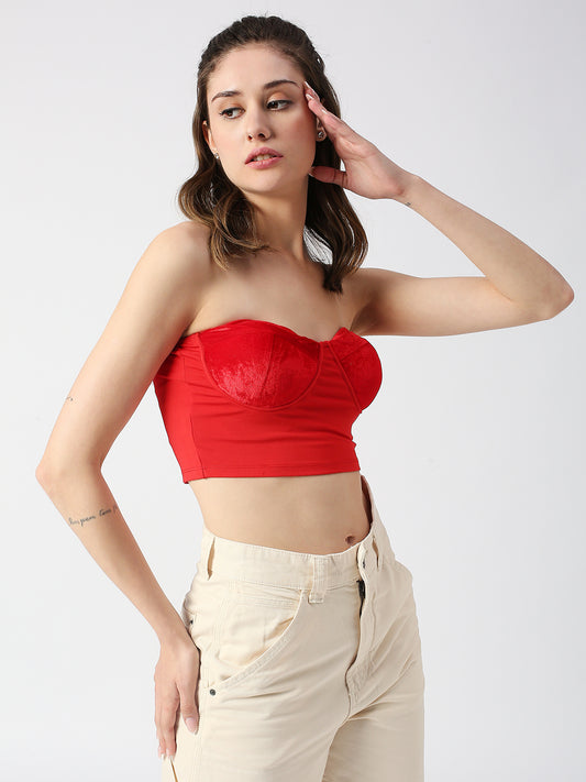 DISRUPT WOMEN RED VELVET PANELED SLIM FIT PADDED TUBE TOP
