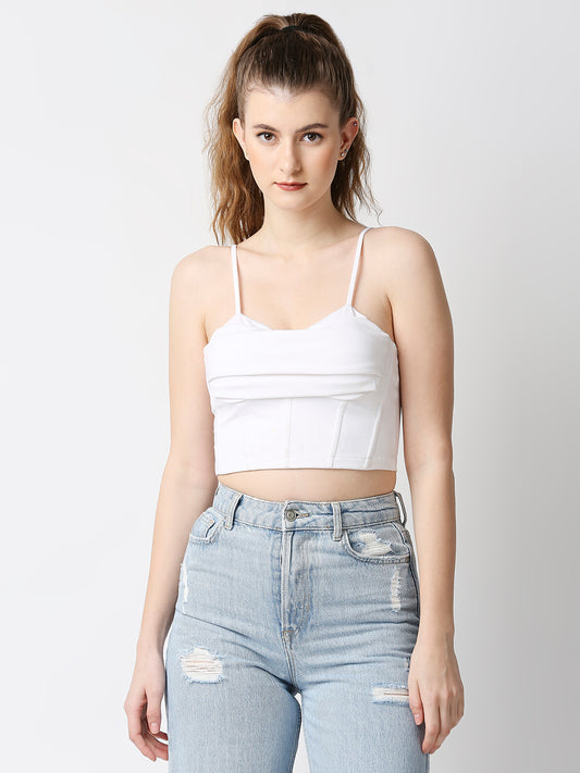 Disrupt Women White Corset Draped Slim Fit Padded Crop Top