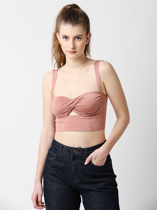 Disrupt Women Rose Mauve Twisted Strappy Slim Fit Crop Top With Cups