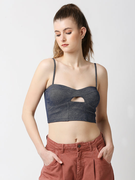 Disrupt Women Blue Twisted Strappy Slim Fit Crop Top With Cups