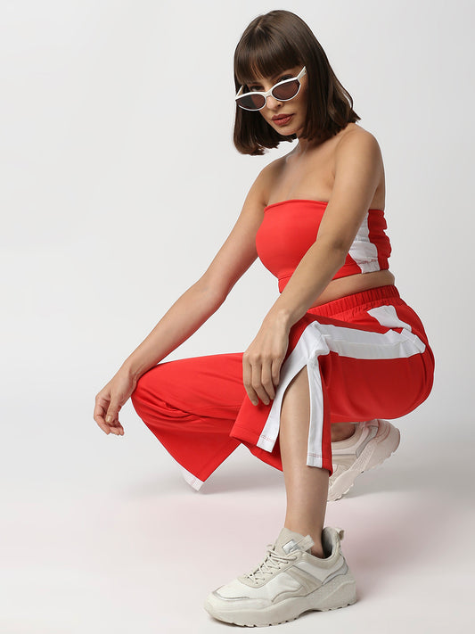Disrupt Women Red Straight Pants With Bralette Crop Top Co-rd Set (2pc)