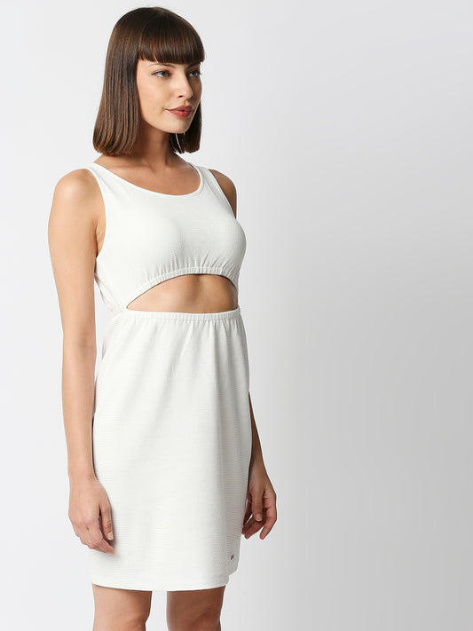 Disrupt Women Front Cut-Out White Regular Fit Dress In Jacquard