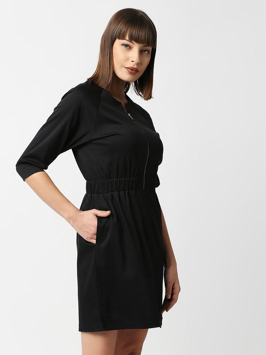 Disrupt Women Black Regular Fit Front Zipper Dress