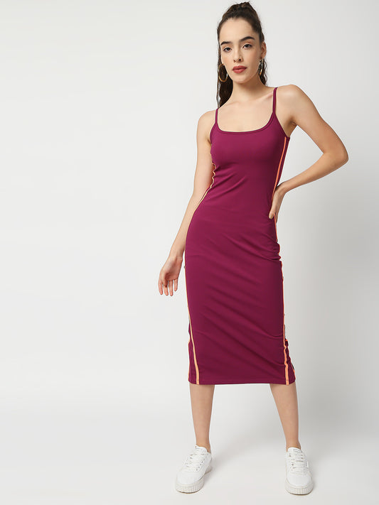 Disrupt Women Wine Strappy Midi Dress With Contrast Side Piping