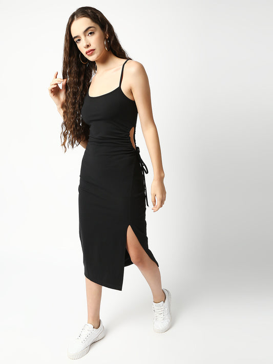 Disrupt Women Black Side Tie-up Detail Strappy Midi Dress
