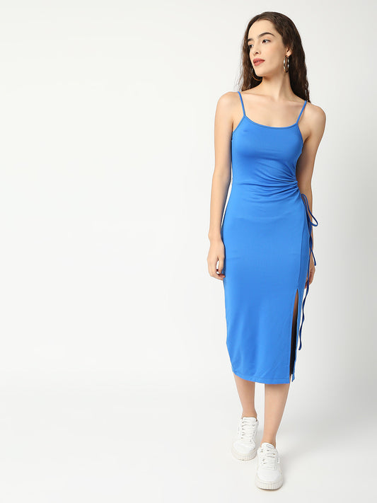 Disrupt Women Blue Strappy Midi Dress With Contrast Side Piping