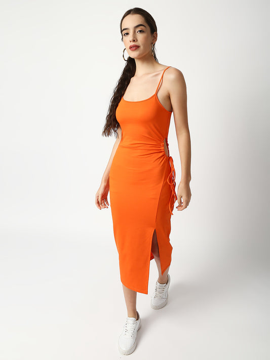 Disrupt Women Orange Side Tie-up Detail Strappy Midi Dress