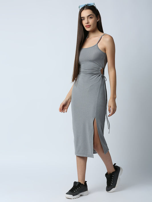 Disrupt Women Grey Side Tie-up Detail Strappy Midi Dress