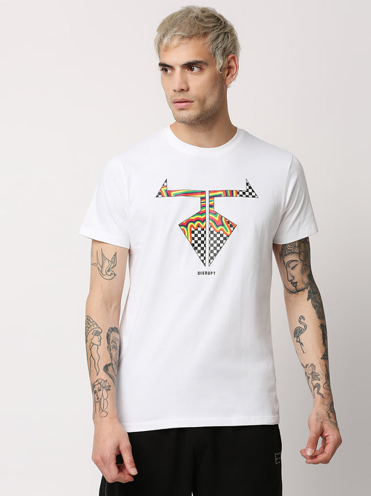 Disrupt Mens White Half Sleeve Cheks Logo Printed T-shirt