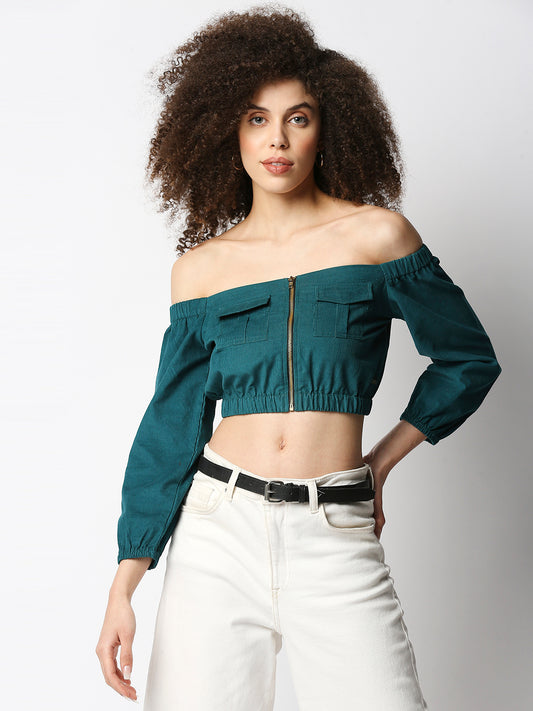 Disrupt Women's Green Corduroy Off-Shoulder Top
