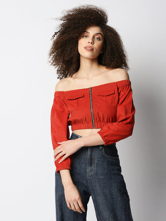 Disrupt Women's Rust Corduroy Off-Shoulder Top