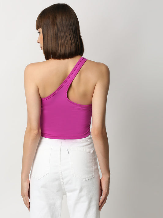 Disrupt Women Purple One Shoulder Slim Fit Crop Top