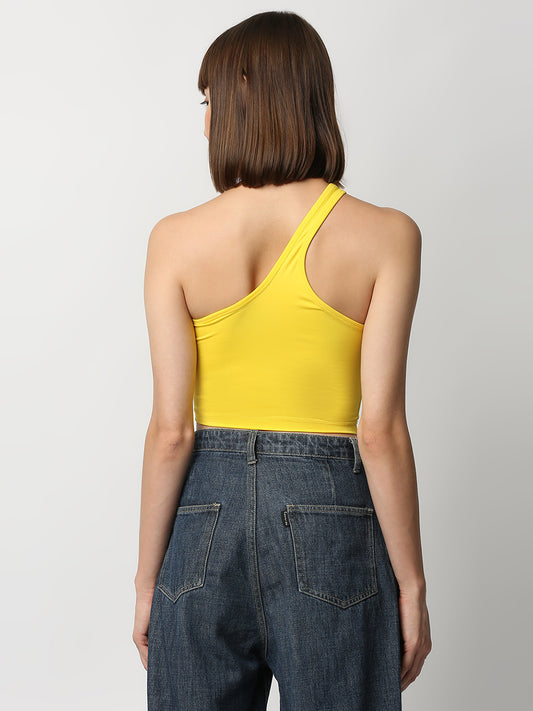 Disrupt Women Yellow One Shoulder Slim Fit Crop Top