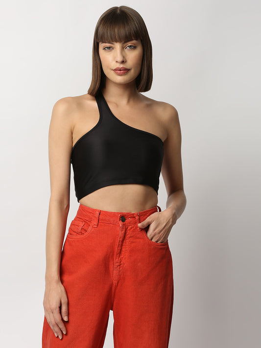 Disrupt Women Black One Shoulder Slim Fit Crop Top