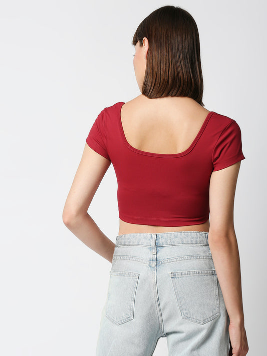 Disrupt Women Maroon Box Neck Slim Fit Smart Crop Top