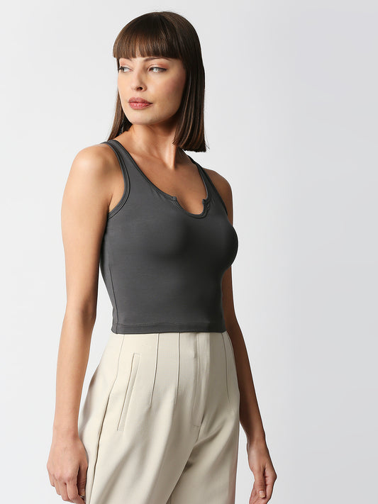 Disrupt Women Sleeveless Grey Scoop Neck Slim Crop Top