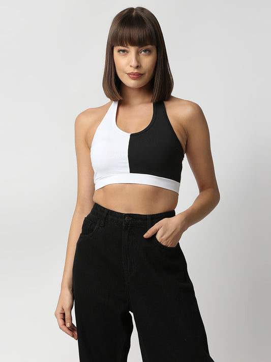 Disrupt Women Black and White Halter Neck Slim Fit Crop Top