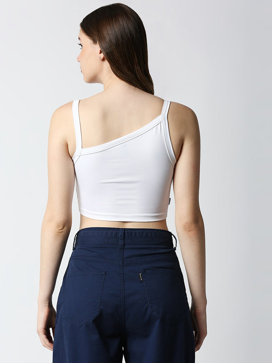 Disrupt Women White Slant Neckline Trendy Slim Fit Sleeveless Crop Top