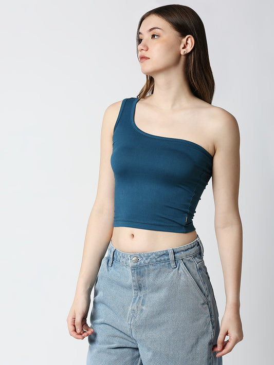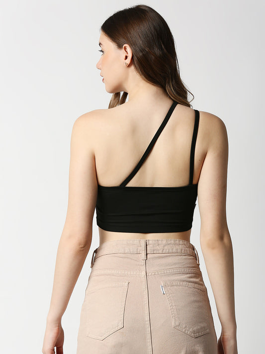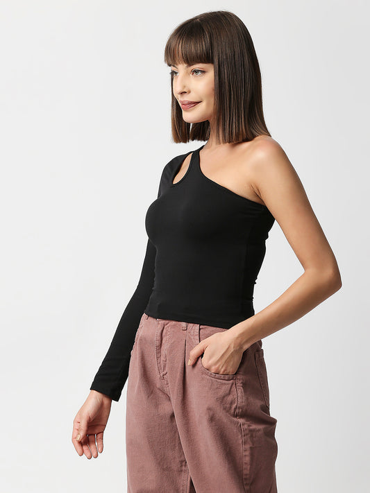 Disrupt Women Black One Shoulder Cut-Out Neck Slim Crop Top