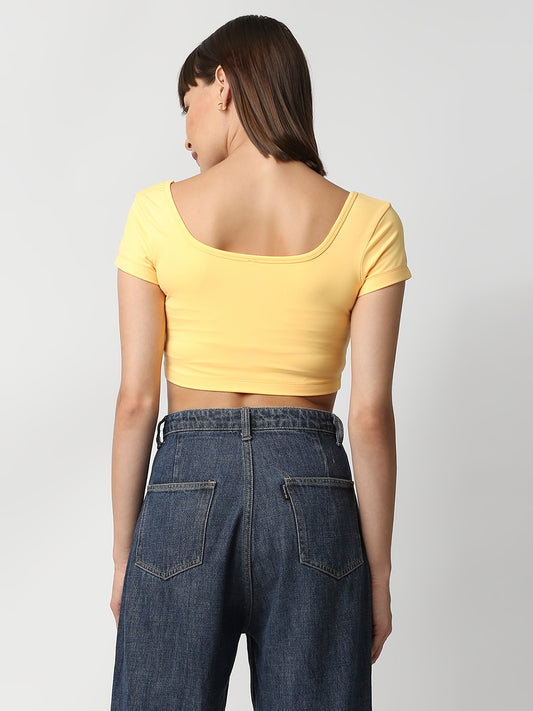 Disrupt Women Yellow Box Neck Slim Fit Smart Crop Top