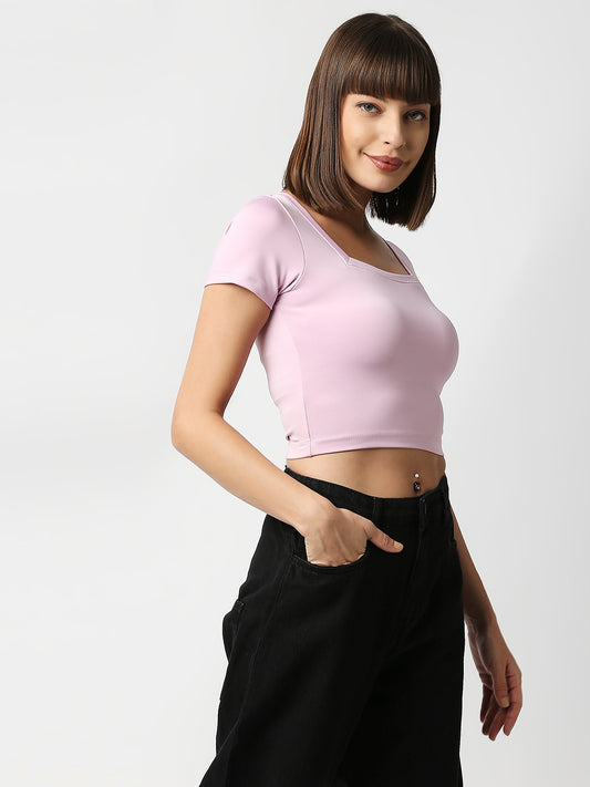 Disrupt Women Light Pink Square Neck Slim Fit Crop Top