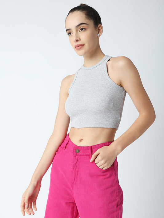 Disrupt Women Sleeveless Grey Ribbed Crop Top