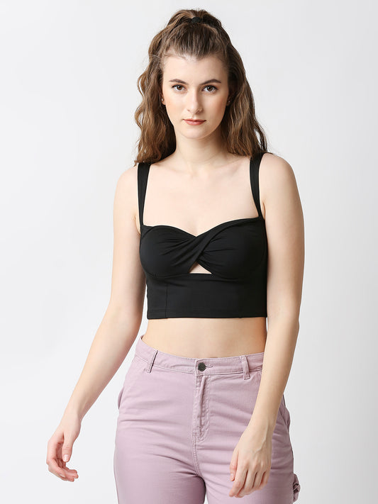 Disrupt Women Black Twisted Strappy Slim Fit Crop Top With Cups