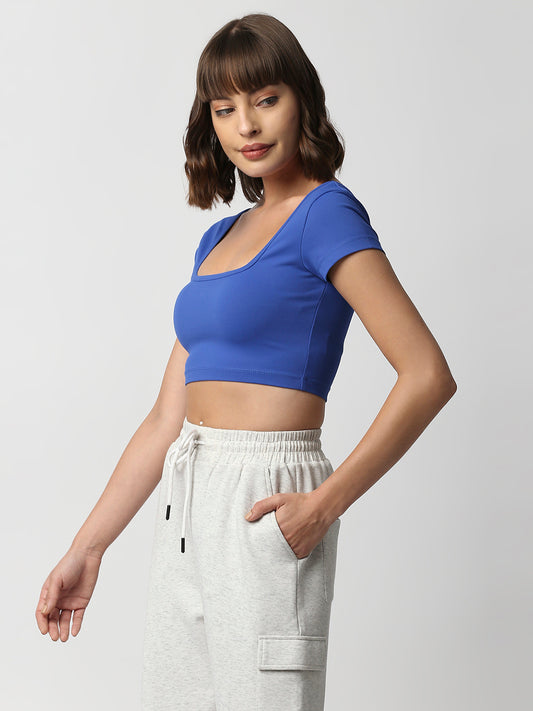 Disrupt Women Royal Blue Box Neck Slim Fit Smart Crop Top