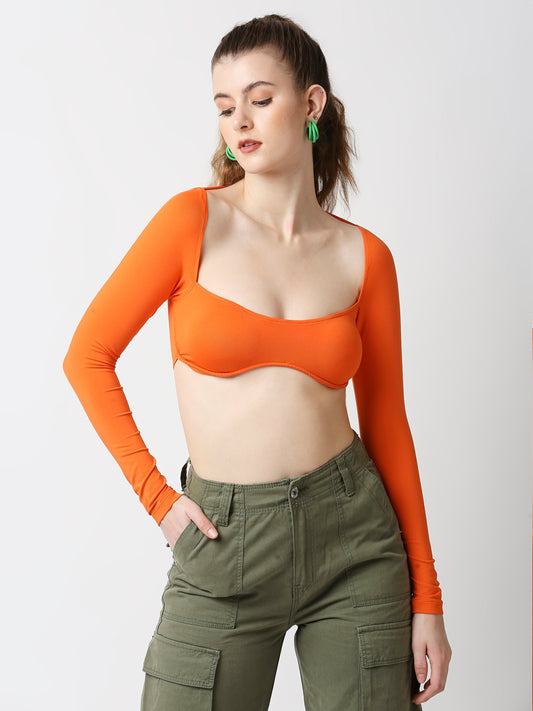 Disrupt Women Orange Wide Square Neck Slim Fit Padded Super Crop Top