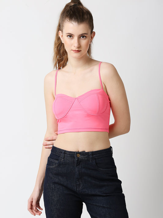 Disrupt Women Neon Pink Slim Fit Crop Bustier With Cups